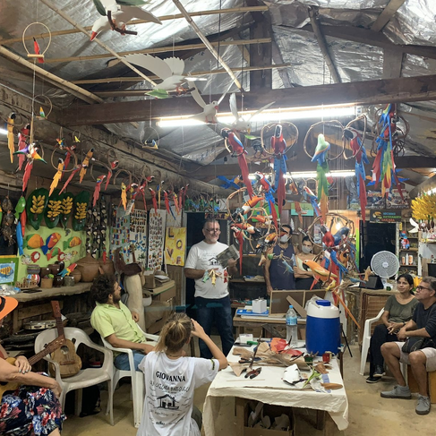 No dia 26 de março (sábado), das 16 às 20 horas, aconteceu a primeira oficina e sarau literário promovidos pelo Projeto Casa Caiçara Barequeçaba “Café de Garapa” no espaço Ateliê “Nicinho Artesanato Caiçara” em Barequeçaba, São Sebastião. A oficina de artesanato com folha de coqueiro areca, ministrada pelo artesão Lindomar Nicinho, ensinou aos convidados (as), jovens e crianças presentes a confeccionar um beija-flor com uma técnica simples usando uma faquinha de corte ou estilete. Ao final, as crianças deram cor e vida ao beija flor, se encantando com a oficina e aprendizado do dia.